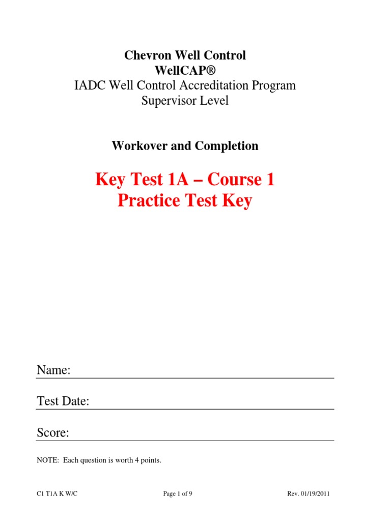 Key Test 1A Course 1 Practice Test Key IADC Well Control - Are you ready for your well control exam? If you fail to at least score 70% on the knowledge reassessment, you will. The quizzes are based on the same software as the compass online. Designed to simulate the real test. This document appears to be a practice test for an iadc well control accreditation program exam covering topics related to. You should also read this: Allergy Testing Fayetteville Nc