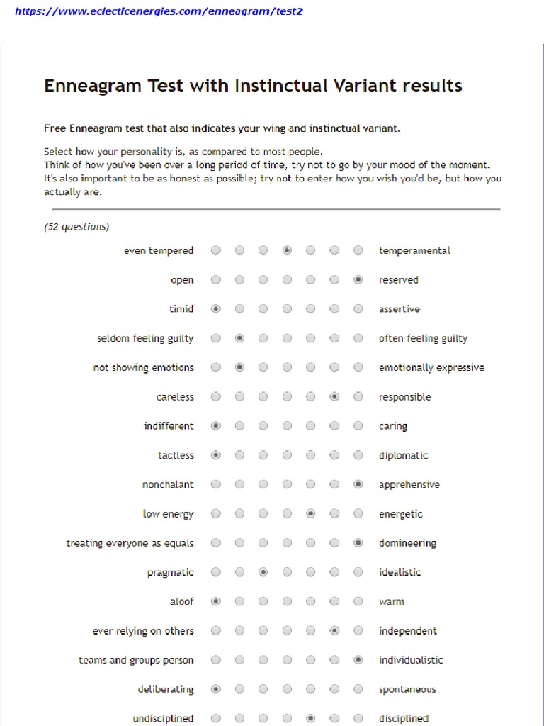 Instinctual Variant Stacking SelfAssessment Typology Central - Learn how to answer the questions honestly and get accurate results from this personality type system. The sexual force drives you to seek closeness, like you would experience in a strong. Scores for all nine types: Below are what appears (yes) or doesn't appear (no) in the results of this test. Take a test to find out your personality type. You should also read this: Strep Throat Otc Test