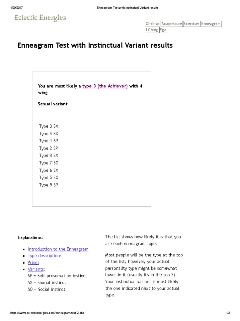 Enneagram Test With Instinctual Variant Results PDF - Enneagram test with instinctual variant. Enneagram instinctual variant theory holds that your instinctual drives can be divided into three forces. The result gives you your instinctual stacking. Includes wings, instinctual variants (subtypes),. This test compares the three instincts independent of type. You should also read this: Testo Max Reviews