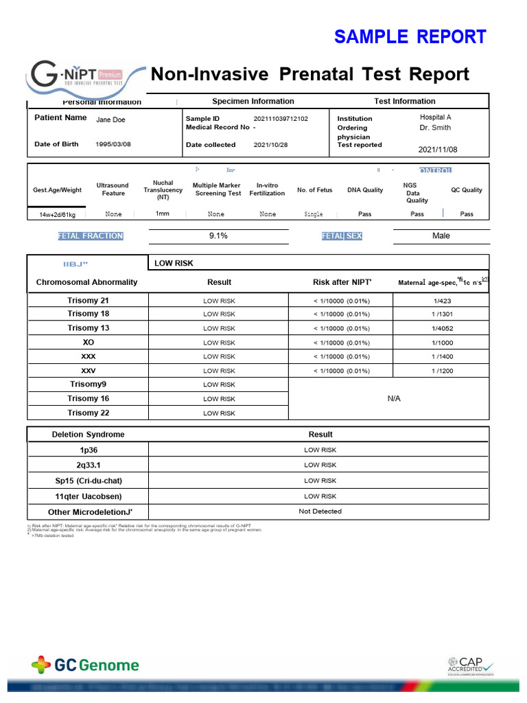 Sample NIPT Results PDF Biology Clinical Medicine - How do i view lab results? When did you get your results? Learn more about the test. Results are ready within 14 days. Results show if the baby has a higher or lower chance for 3 chromosome conditions: You should also read this: Tony Effe - Chiara Testo