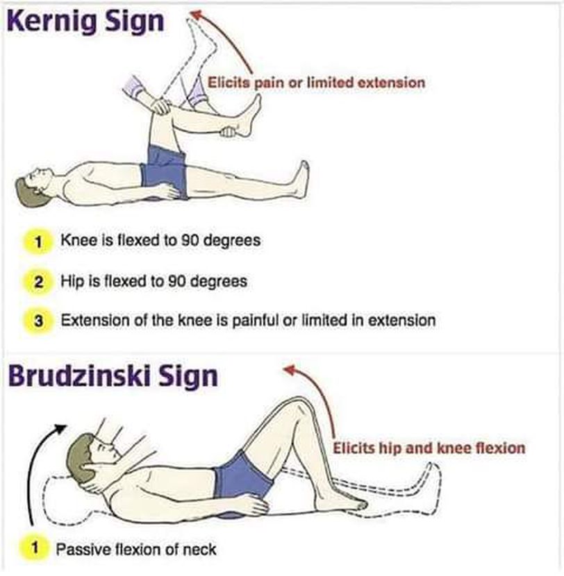 Kernig sign, Brudzinski sign, how to perform Kernig and Brudzinski test - Critical and timely diagnosis may be facilitated by kernig’s and brudzinski’s signs. The brudzinski sign is one of the physical maneuvers used to evaluate an individual for a suspected case of meningitis, a condition characterized by inflammation of the meninges (i see more Kernig's sign, brudzinski's sign, and nuchal rigidity are bedside diagnostic signs used to evaluate suspected cases of. You should also read this: Dakota Completes His Personality Test