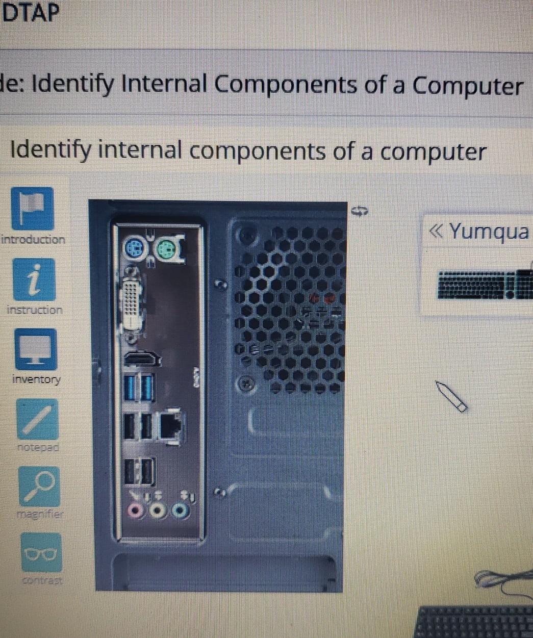 Solved CENGAGE MINDTAP OS Lab 13 Practice Mode Ident... - First, identify the different internal components such as video, audio, multipurpose, ethernet, and keyboard/mouse. Central processing unit(cpu) random access memory(ram) solid state drive(ssd) monitor; Your solution’s ready to go! The items such as introduction, instruction, inventory, notepad, magnifier, and contrast are not internal components of a computer. There are 2 steps to solve this one. You should also read this: Tabe Test Mdc