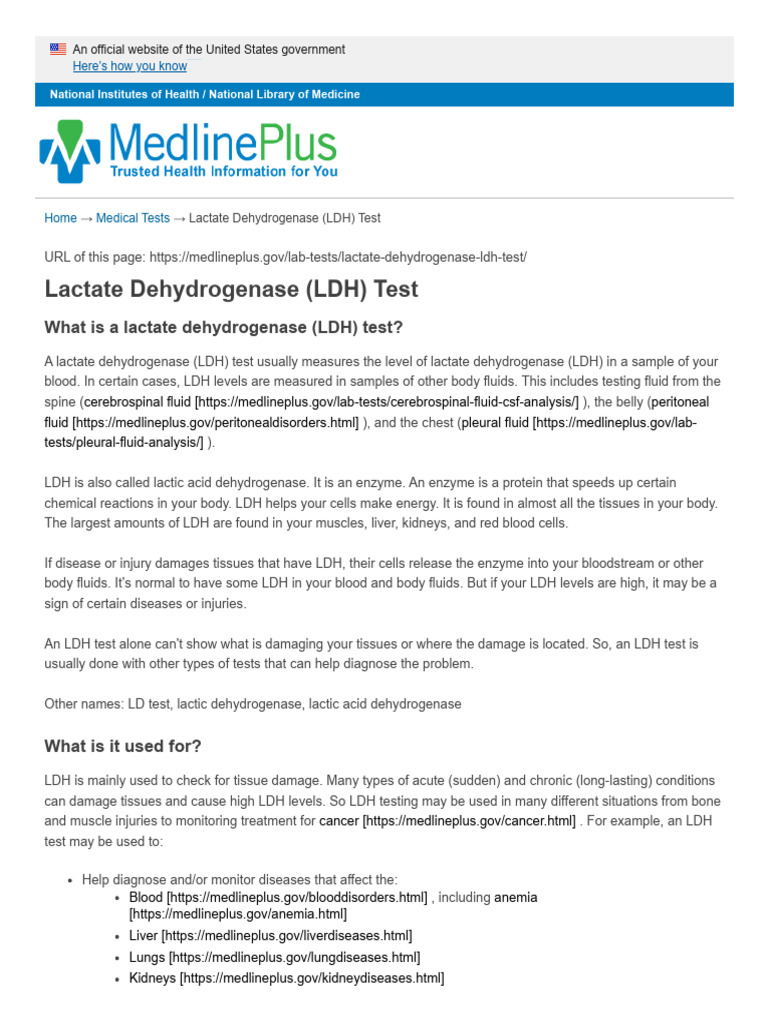 Lactate Dehydrogenase (LDH) Test & Example Free PDF Download - The ldh (lactate dehydrogenase) test measures the level of ldh in the blood. State sex of patient on the test request. The highest levels are seen in patients with megaloblastic anemia, disseminated carcinoma, and shock. Ld isoenzymes, or lactate dehydrogenase isoenzymes, measures different forms of ld in the blood. Increased amounts may occur in association with ischemic necrosis, meningitis, leukemia,. You should also read this: How Accurate Are Hiv Tests After 2 Weeks