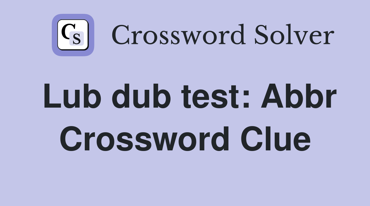 Lub dub test Abbr. Crossword Clue Answers Crossword Solver - The crossword solver finds answers to classic crosswords and cryptic crossword puzzles. Here are the possible solutions for lub dub test: Many other players have had difficulties with. There is 1 possible solution for the: On this page you will find all the daily themed crossword may 17 2024 answer. You should also read this: Tear Test Dog