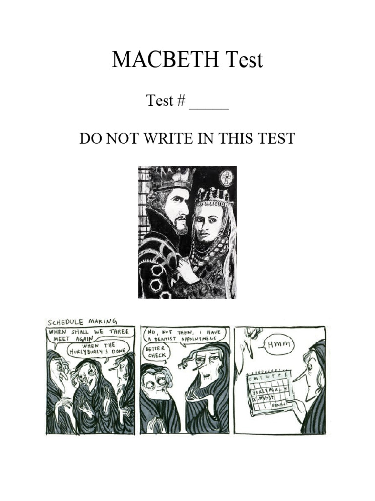 Macbeth Final Test Fill in the best answer on your scantron sheet. 1 - Macbeth purposefully keeps his plot against duncan from lady macbeth. Scribd is the world's largest social reading and publishing site. Study with quizlet and memorize flashcards containing terms like macbeth, the porter, birnam wood and more. William shakespeare jane austen virginia woolf beatrix potter 2/10 what. How is macbeth the tragic hero? You should also read this: Wald Wolfowitz Runs Test