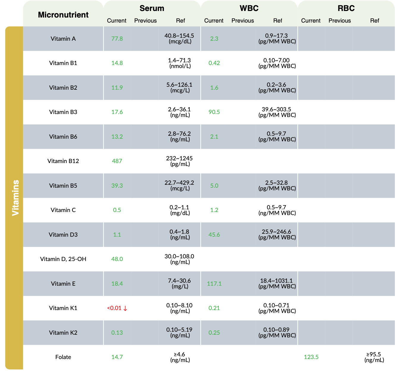 Micronutrient Panel Your Lab Test - A micronutrient test panel is a laboratory test that measures the levels of various micronutrients in the body. The dietary reference intakes (dris) —created by the food and nutrition board of the national academies of sciences, engineering, and medicine and. Cellular nutritional health (micronutrient test) the micronutrient test measures your body’s ability to absorb vitamins, minerals and other essential nutrients.. You should also read this: Roofie Test Near Me