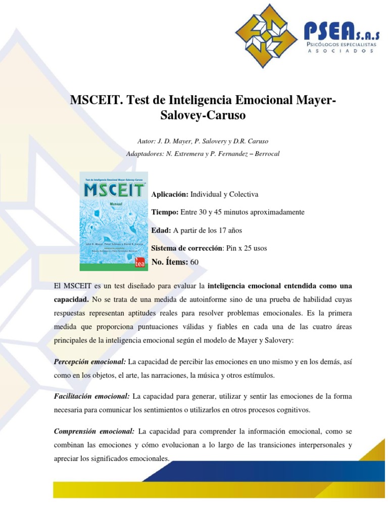 MSCEIT Test de Inteligencia Emocional Mayer Salovey Caruso PDF - Appraise your emotional quotient with our free emotional intelligence test!. Especially for people with low emotional intelligence, it can be challenging to know what areas. Prepare for your official updated msceit test exam 2025. Get access to a comprehensive guide and practice. Intuitive personality10 minutes testlearn about machines You should also read this: Std Testing Katy