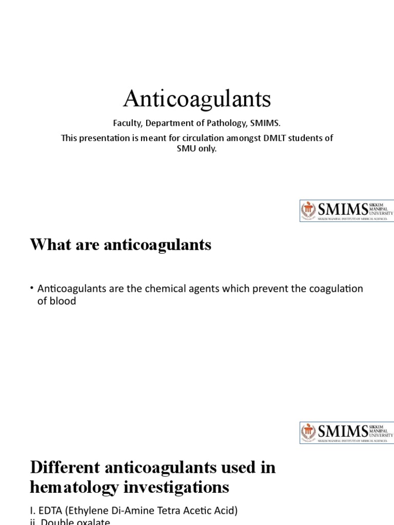 PPT Lecture 1 Clinical Biochemistry PowerPoint Presentation, free - Study with quizlet and memorize flashcards containing terms like anticoagulants, what 3 anticoagulants are normally used for routine hematology tests, how does edta work. The choice of anticoagulant depends on the type of test being performed and the. There are 3 steps to solve this one. Let us dive deeper into each one of these so. Common types of anticoagulants. You should also read this: Would Alcohol Show Up In A Drug Test
