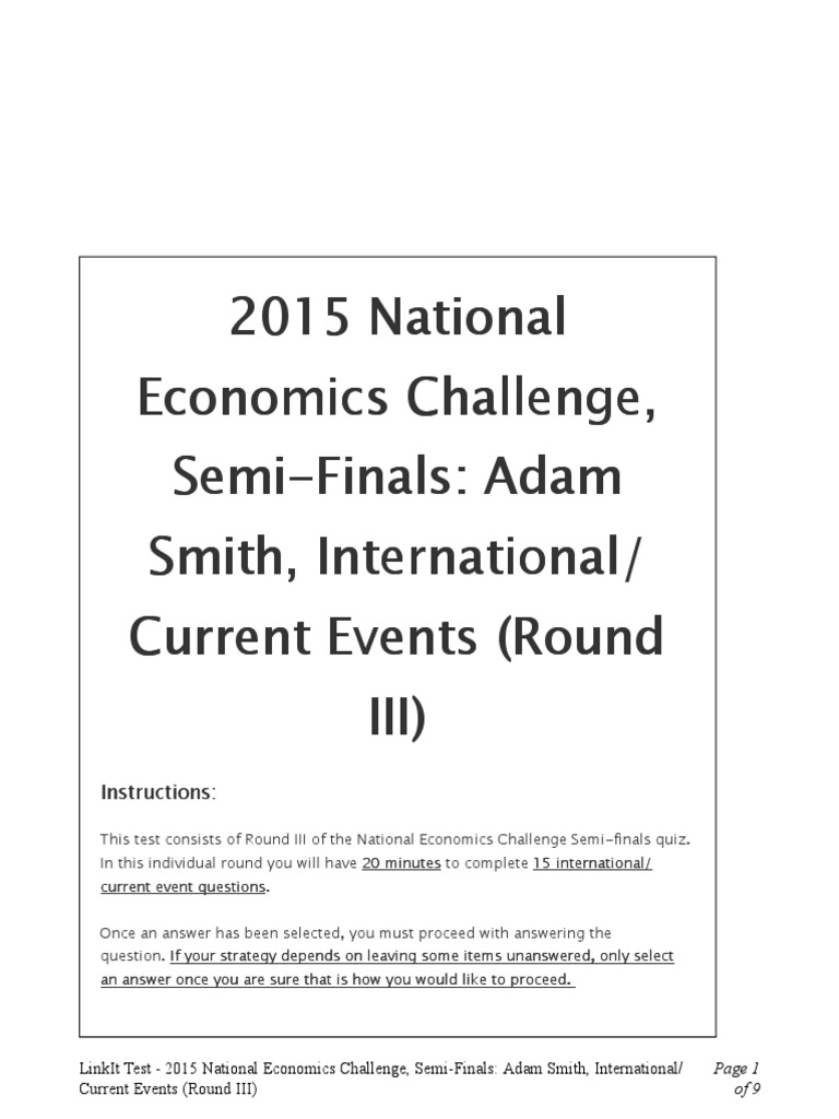 2015 National Economics Challenge, SemiFinals Adam Smith - How many members are on the board of governors? Yei's learning portal provides practice resources for the ap economics exams, national economics challenge, econbowl, econolympiad, and more. Which of the following statements describes what is meant by an inferior good in economics? When consumer income increases, the demand for peanut butter decreases. Which of the following statements describes what is. You should also read this: Chalk Tire Test