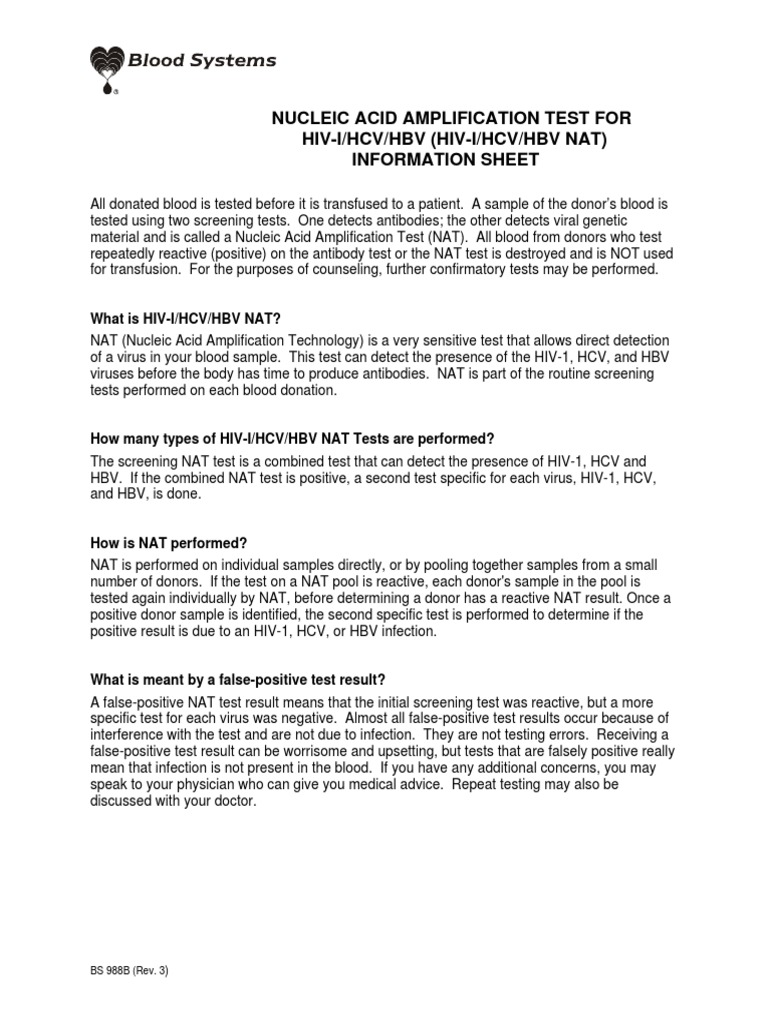 Nucleic Acid Amplification Test For HivI/Hcv/Hbv (HivI/Hcv/Hbv Nat - Nucleic acid amplification testing (naat), which detects hiv genetic material in the blood, is a more accurate way to diagnose ahi but is expensive. Confirmatory & other hiv tests. It is intended for use as an aid in the. Of rna or dna in a sample. In recent years, more sophisticated analytical tools,such. You should also read this: List The Nine Ase Automotive And Light Truck Test Categories
