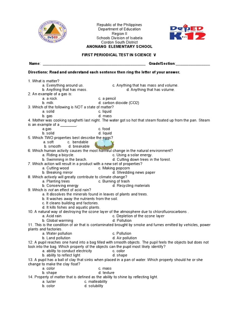 Grade 5 First Periodical Test in SCIENCE PDF Reuse Recycling - The 2025 grade 5 science test will take place in the spring and dates will be shared no later than early march. A group of students dropped a golf ball from different heights above a level concrete. Nys 5th & 8th grade science assessment ny state science test the assessment in science asks students to demonstrate scientific knowledge and to. You should also read this: What Are The Hormones Secreted By The Testes