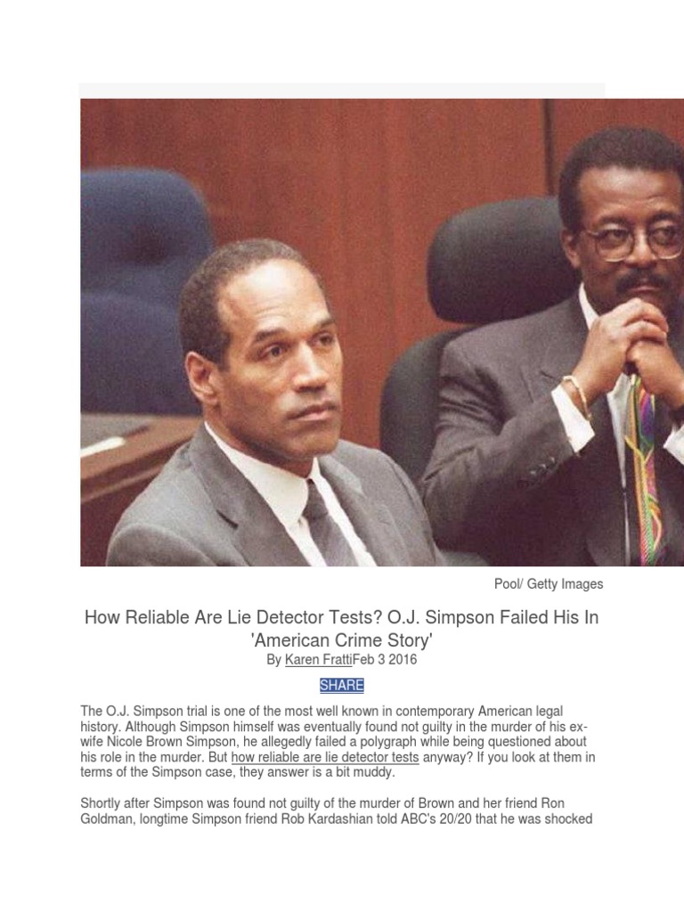 Page 7 of 11 Lie Detector Fail?! The People Vs. OJ Simpson, Ep. 1 - The run of his life: Here is results quoted in jeffrey toobins book: Simpson's former wife and a friend were stabbed to death, mr. The examiner’s consideration of whether he’s telling the truth on the lie detector test is part of the docuseries’ focus on theories that o.j. Lee bailey has testified that days after o. You should also read this: Bcg Vaccine And Tb Skin Test