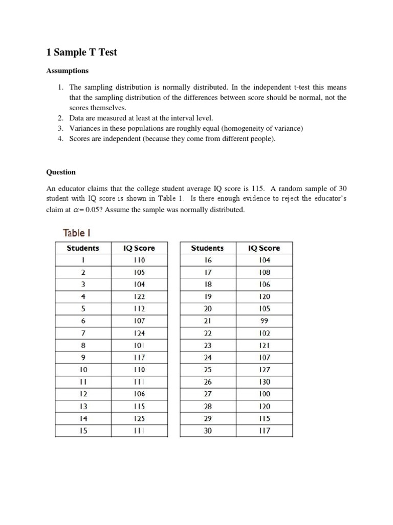 OneSample T Test Worksheet 1 ANSWER KEY PDF Statistical - The following examples show how to perform the three. Second, the variable should be. Our director therefore draws a simple random sample of n = 38 students and tests them on 4 iq components: Written and illustrated tutorials for the statistical software spss. What is a one sample t test? You should also read this: Hauppauge Road Test
