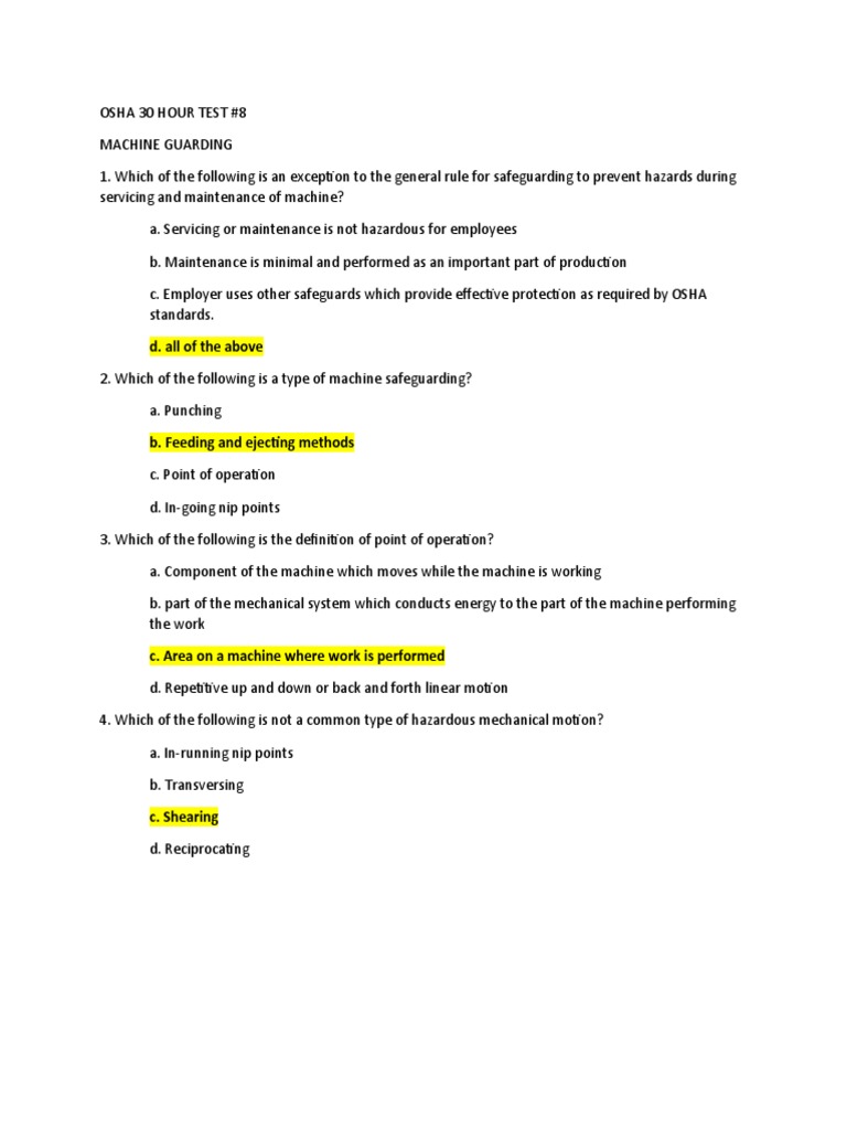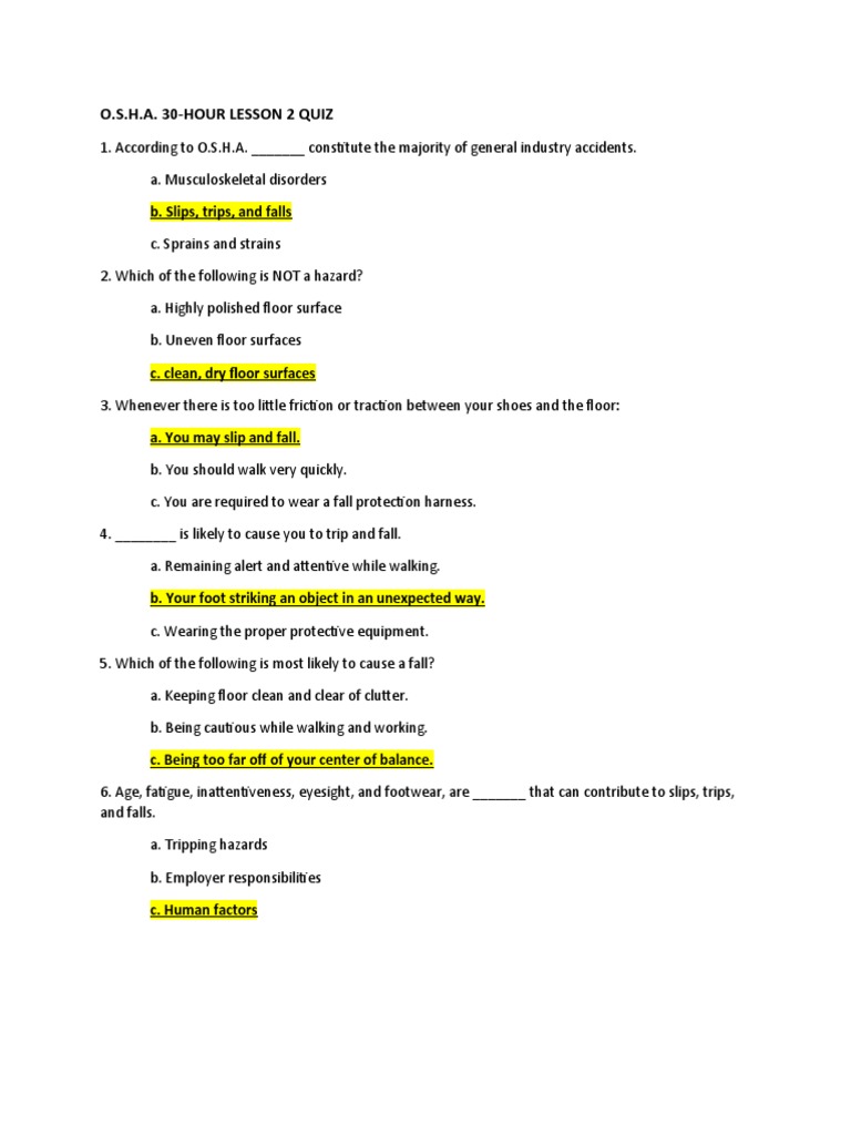 OSHA 30 HOUR QUESTIONS AND ANSWERS GRADED A+ Browsegrades - Learn what to expect from the osha 30 final exam, a comprehensive test that assesses your knowledge of workplace safety and health regulations. This test is a crucial component of the osha 30 training program, which is designed to educate workers and supervisors with safety and health responsibilities about. Enroll today and gain the knowledge and. Questions from the module. You should also read this: Very Faint Line Pregnancy Test First Response