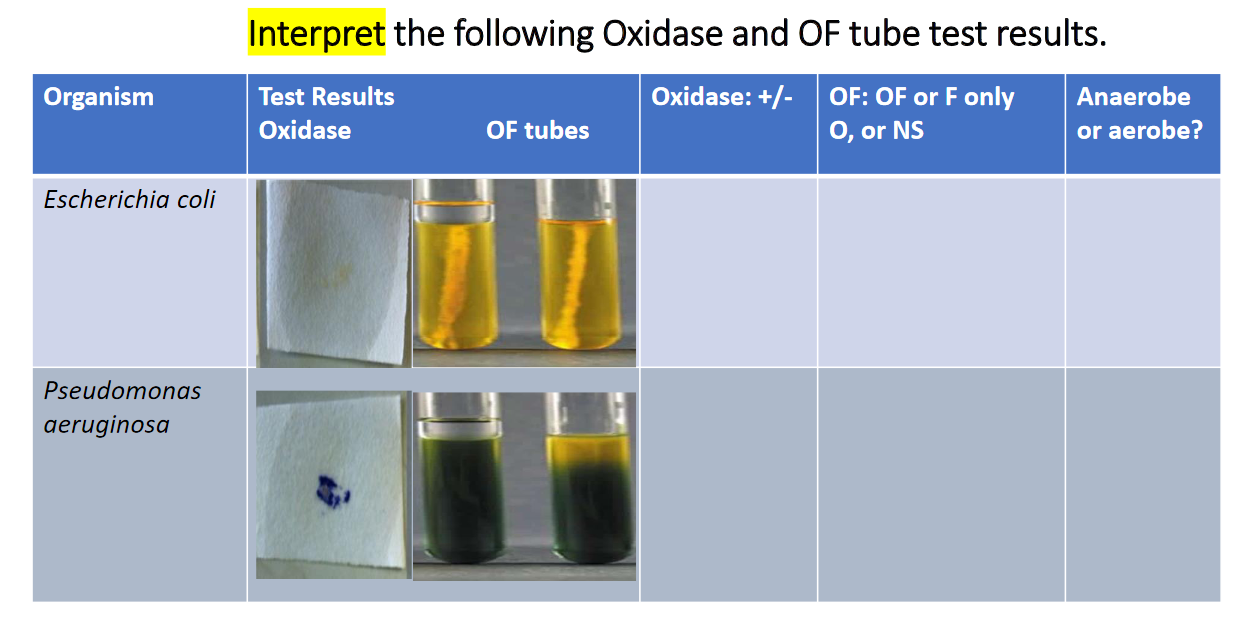 Solved Interpret the following Oxidase and OF tube test - Oxidase test is most helpful in screening colonies suspected of being one of the enterobacteriaceae (all negative) and in identifying colonies suspected of belonging to other. The test involves adding a reagent containing an artificial. What the system does is it helps the movement of electrons between redox. In the presence of an organism that contains the cytochrome oxidase enzyme,. You should also read this: Arrt Test Prep
