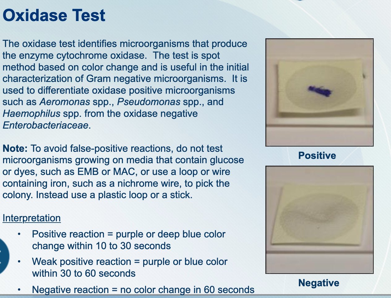PHT 381 Lab 6 Biochemical reactions. ppt download - Explore the principles and applications of the oxidase test in bacterial identification, including result interpretation and common species detected. The oxidase test is a biochemical test used to determine the presence of the oxidase enzyme in bacterial cells. What the system does is it helps the movement of electrons between redox. Color changes to purple within 60 to 90 seconds.. You should also read this: Parasitic Drain Test