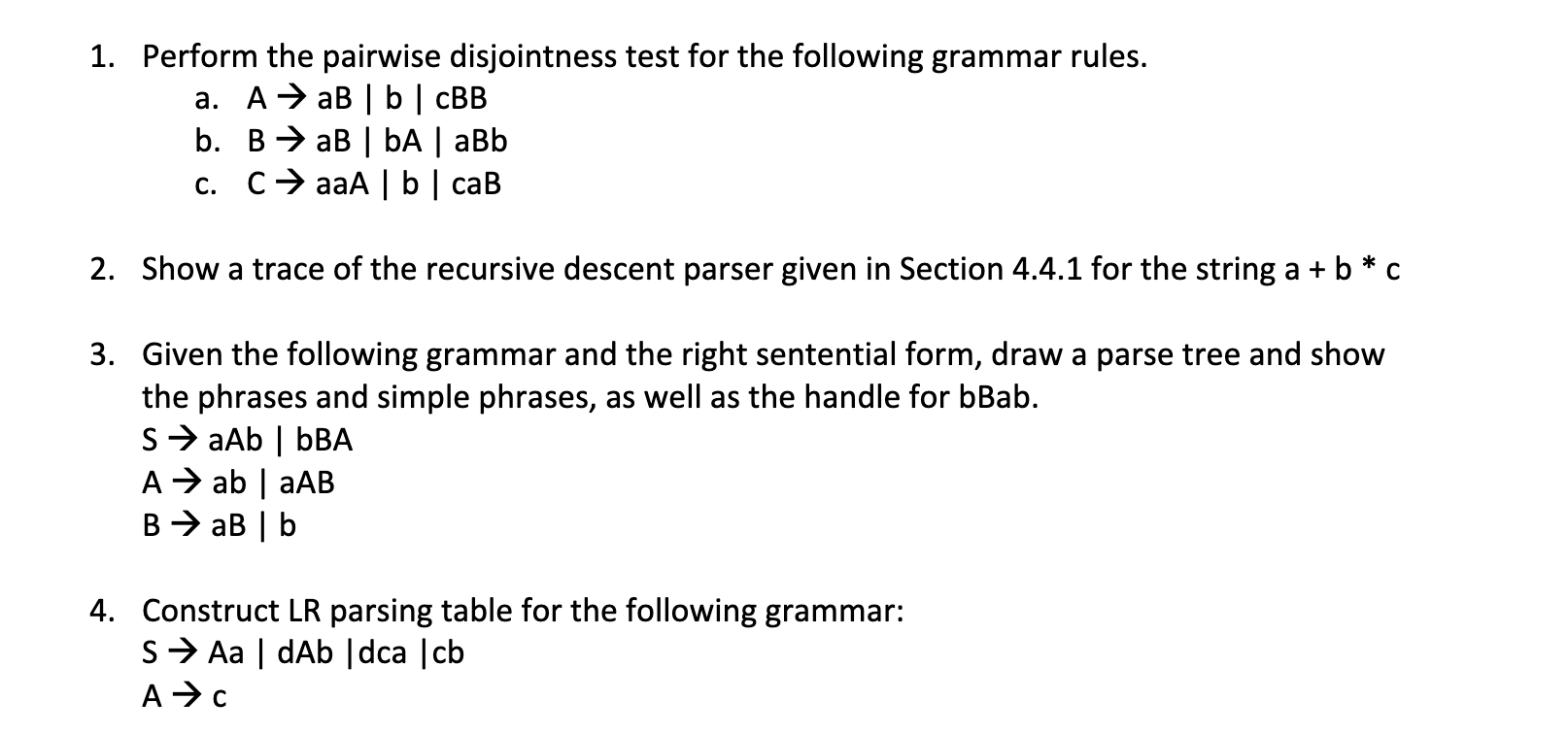Solved 1. Perform the pairwise disjointness test for the - B → ab a q2. B la 3 show a trace of the recursive. Perform the pairwise disjointness test for the following grammar rules. Perform the pairwise disjointness test for each of the following grammar rules. Does this grammar rule pass the pairwise disjointness test? You should also read this: How Do You Test Low Air Pressure Warning Signal