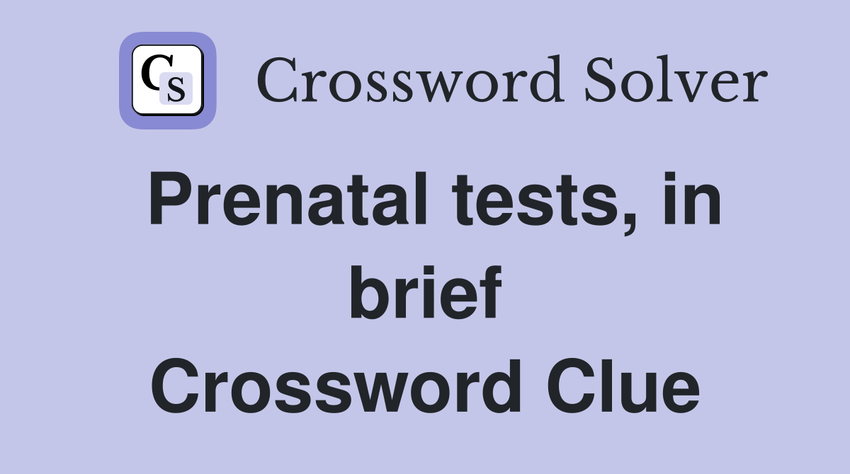 When pregnant, understanding the types of prenatal testing can be - Now, let's get into the answer for prenatal tests, in brief crossword clue most recently seen in the nyt crossword. We have found 40 possible answers for this clue in our database. There is one answer total, amnio is the most recent and it has 5 letters. The solution we have is shown below (highlighted in. Here is the answer. You should also read this: Unit 1 Test