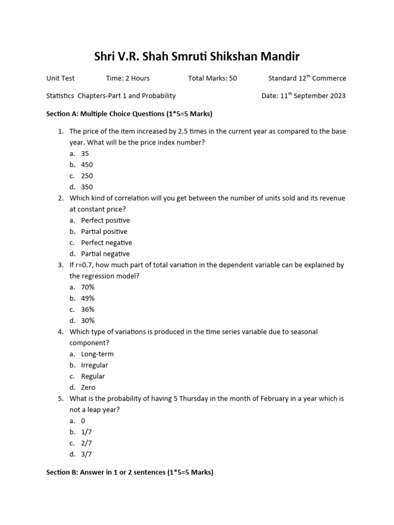 Mathematics 9 Probability and Statistics Unit Test Name PDF - Study with quizlet and memorize flashcards containing terms like find the indicated probability. Find other quizzes for mathematics and more on quizizz for free! Probability and statistics quiz for 5th grade students. The person or thing to which the number or category is assigned. Contingency tables, marginal/conditional distributions, are variables dependent? You should also read this: Paternity Test Clinic Near Me