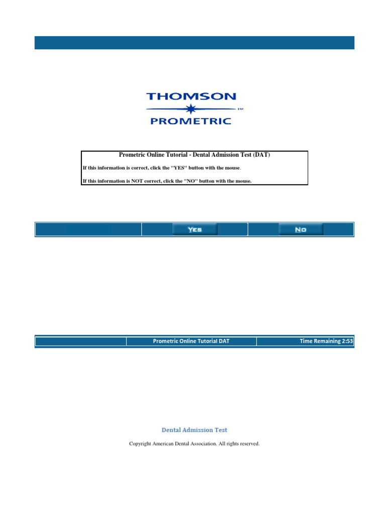 Prometric Online Tutorial Dental Admission Test (DAT) PDF - Be sure to plan ahead and apply at least six to eight weeks before you wish to take the test. Find information on scoring, fees and official requirements for taking the test in 2025. Examinations are administered by prometric (“prometric” or “administration vendor”). It consists of four main sections: Access the full list of potential dat exam dates to plan. You should also read this: Can I Take Tylenol Before A Blood Test