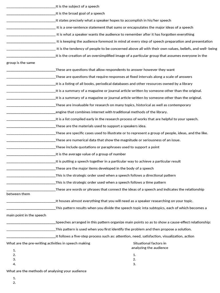 Final Exam, part 2 CMST 2060 PUBLIC SPEAKING Docsity - Additional final exam study guide, questions, answers, notes, etc. Study with quizlet and memorize flashcards containing terms like chapter 1: Study flashcards on public speaking final exam at cram.com. Test and improve your knowledge of communications 101: Study flashcards on public speaking final exam review at cram.com. You should also read this: Fema 800 Test Answers
