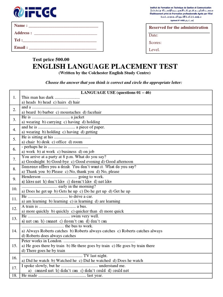 English Language Placement Test PDF - You do the set up process and you just click on the language you want to test. There will be a listening portion. Total score of 7.5 with 7.5 or above on speaking and writing. We now have a new email address for placement test related inquiries: French, german, russian, spanish, spanish for heritage speakers, latin, and japanese. You should also read this: Oblivion Testing Hall Console Command