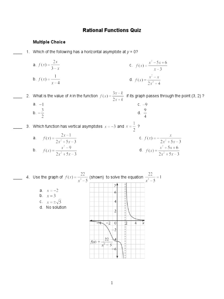 Rational Functions Practice Test PDF - 12 ) circle the letter of the correct response. Rational functions unit test quiz for 9th grade students. Polynomial and rational functions test part 1 learn with flashcards, games, and more — for free. If the degree in the numerator is less than the degree in the denominator, y=0. Write an equation to represent this function, then, identify the asymptotes. You should also read this: Invitae Dna Test