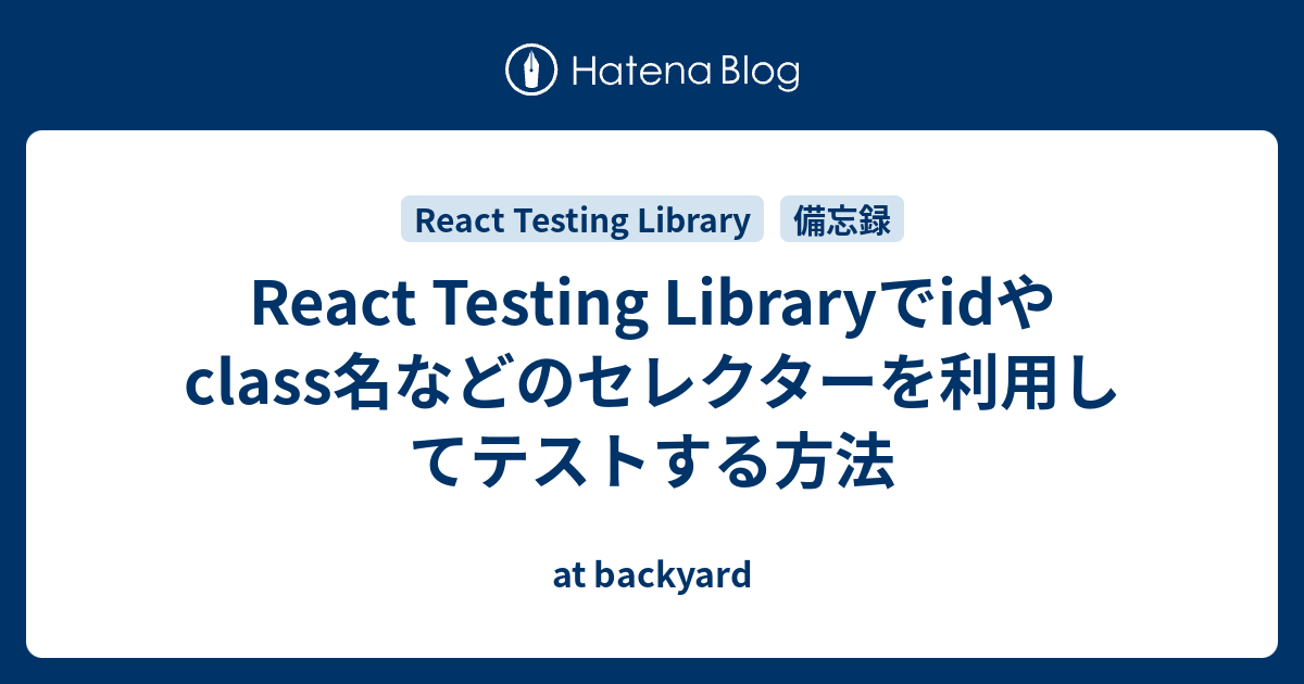React Testing Libraryでidやclass名などのセレクターを利用してテストする方法 at backyard - In your test code, you can then query this button using getbytestid: Note that using this as an escape hatch to query. In this lesson, we are going to look at the one query that. You can of course search. The testing library documentation for queries says that the getbytext query takes a container parameter, which i guessed lets you. You should also read this: Is There A Test For Eds