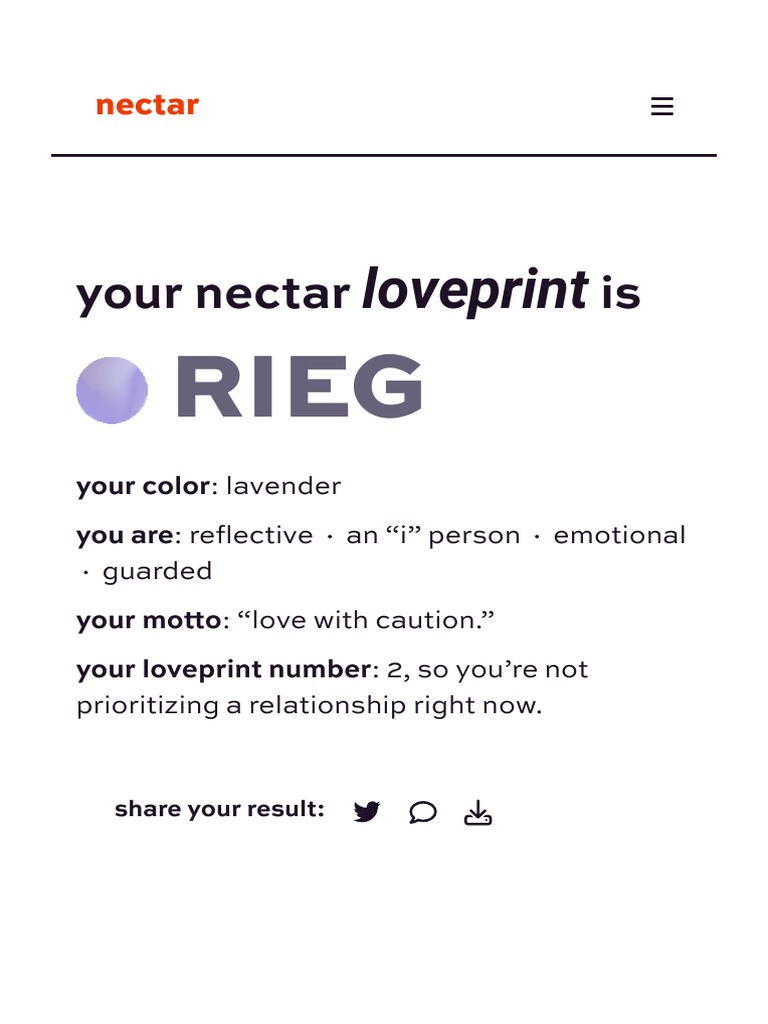 taking the nectar love test fyp lovetest relationship test nectar - I've come across nectar's personality quiz about your love life and how you connect with others when it comes to relationships. You’ll learn your dating intentions and only match with people who want the same. You start by taking nectar's relationship readiness and loveprint assessments. Tap the screen to reveal me. “loveprint by love, nectar” test You should also read this: Does Kroger Sell Drug Tests