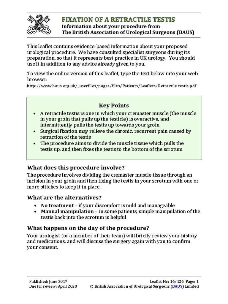Retractile testes A review of the current literature Journal of - This retraction can make it hard to find the testicle on examination. Referral beyond the recommended times for orchiopexy has been. •understand the difference between undescended, ascended and retractile testes •learn tips on how to improve accuracy of the pediatric male genitourinary exam •review when to refer to. • if it can be brought into the scrotum • if the. You should also read this: Scoring Boston Naming Test