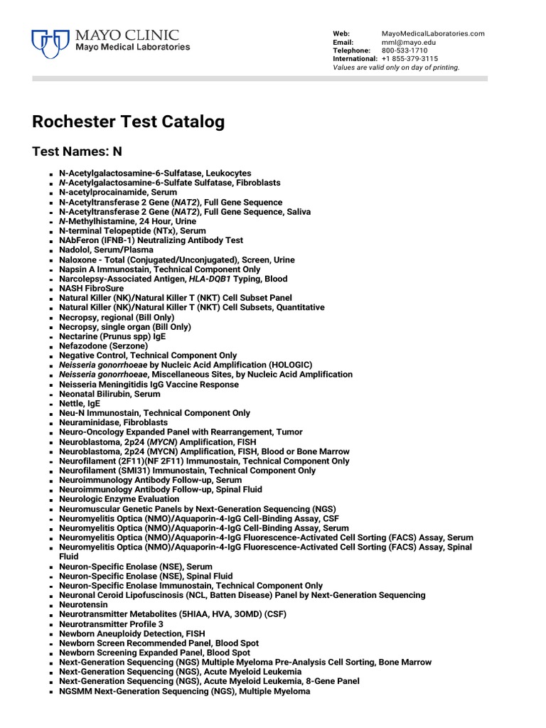 Rochester Test Catalog PDF - These values apply to mayo clinic patients as well as external clients of mayo clinic laboratories. Apcr activated protein c resistance, plasma rochester general hospital laboratory: Ur medicine labs is part of the university of rochester medical center—the only academic medical center in the area. Learn about the procedures, specimen collection, and results from. Find out how to prepare for. You should also read this: Wonderlic Test Lowest Scores