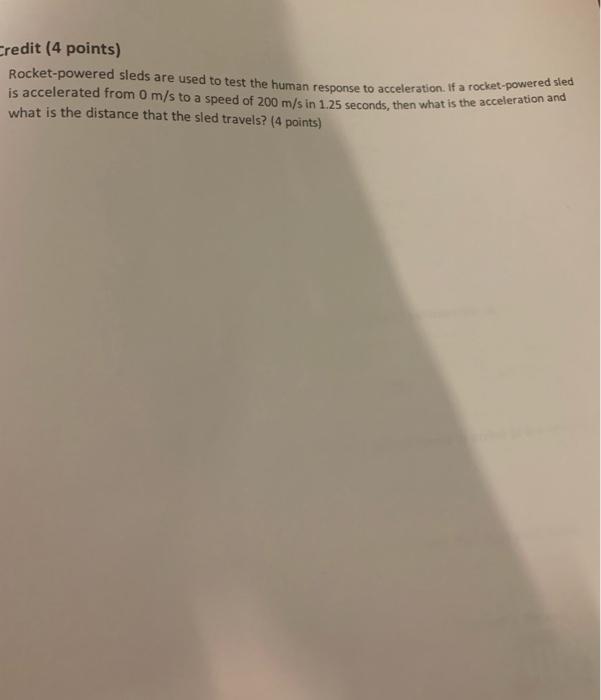 Solved redit (4 points) Rocketpowered sleds are used to - Divide the final velocity v by the time t to find. V = u + a t, where the initial velocity u is assumed to be 0. In this problem, we are to solve for the acceleration. Determine the formula/s that may be utilized in answering the problem. Starting from rest, one sled can reach a speed of 444 m/s. You should also read this: Beat Etg Test