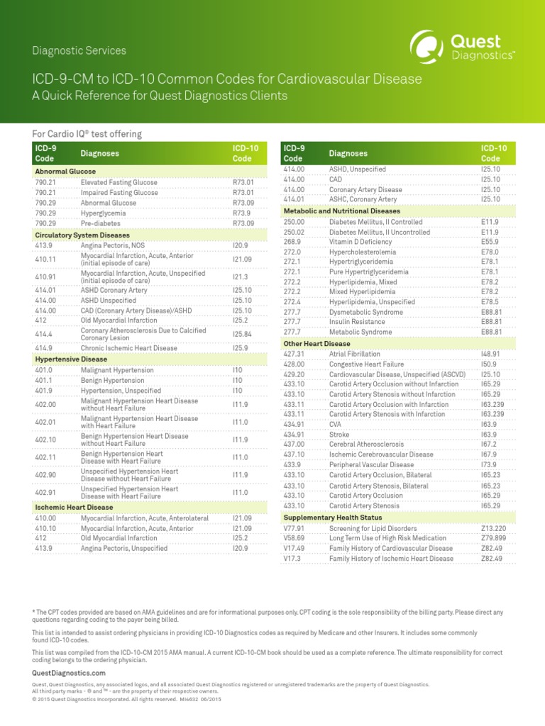 ICD9CM To ICD10 Common Codes For Cardiovascular Disease A Quick - Pallidum antibody is equivocal or positive, then rpr screen with. Each monitoring test should use the same assay. When only a single test, hepatitis b surface antigen, is ordered to diagnose. If the rpr is reactive, then rpr titer and treponema pallidum antibody, particle agglutination will be performed at an additional charge (cpt code(s): Reference ranges are provided as general. You should also read this: Melisa Test Labcorp