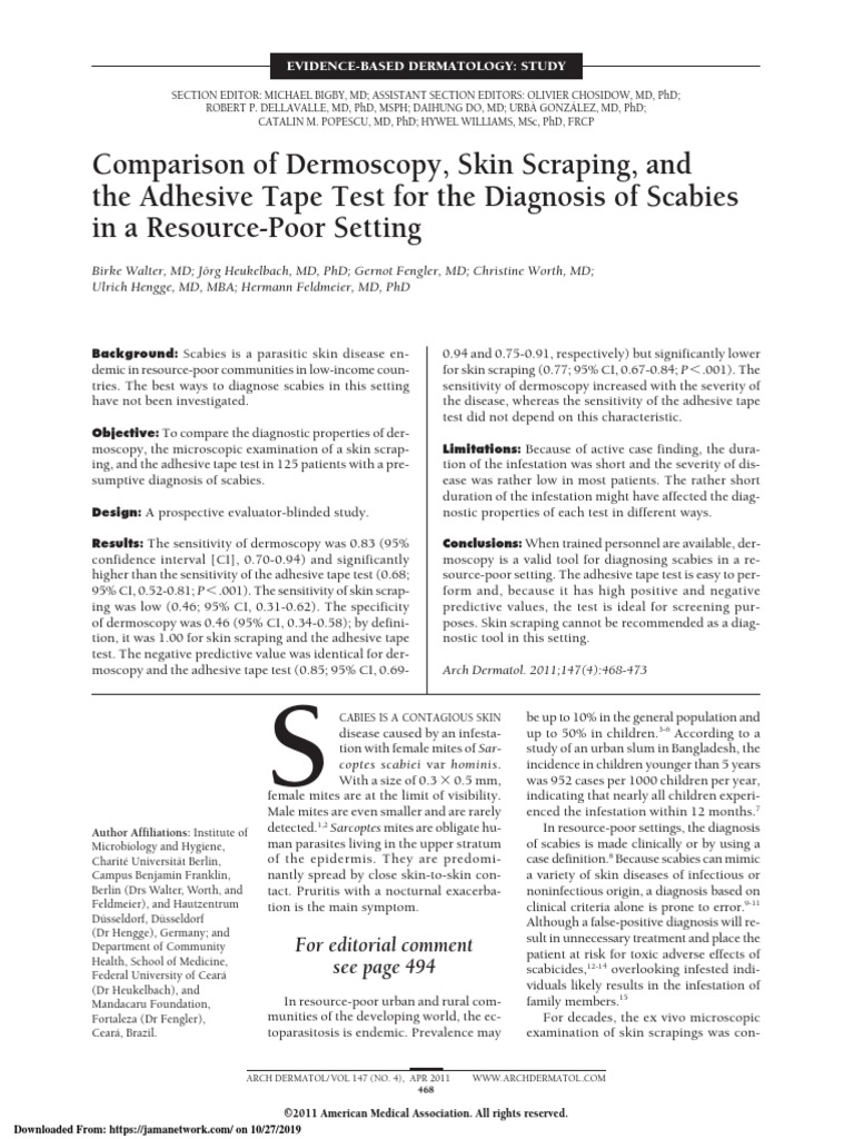 Dermoscopy, light microscopy, and realtime polymerase chain reaction - To compare the diagnostic properties of dermoscopy, the microscopic examination of a skin scraping, and the adhesive tape test in 125 patients with a presumptive diagnosis of. The goal of this paper is to determine if a gold standard confirmatory test exists for the diagnosis of scabies by comparing skin scraping, adhesive tape, dermoscopy, and pcr. The goal of this. You should also read this: Alpha Lion Superhuman Test Reviews
