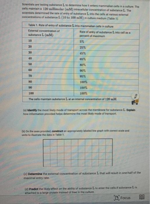 Solved Scientists are testing substance L to determine how - The ability of substance l to enter mammalian cells would be affected if it is attached to a large protein instead of being free in the culture medium. The scientists determined the rate of entry of substance l into the cells at various external concentrations of substance l(10 to 100 mm) in culture medium (table 1) table 1. The cells. You should also read this: Botw Major Test Of Strength