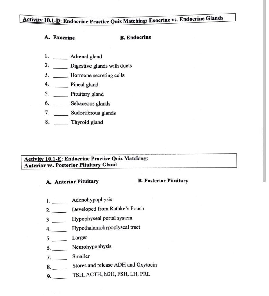 Solved Activity 10.1D Endocrine Practice Quiz Matching - The following laboratory tests are associated with the diagnosis and management of endocrine disorders: The acth stimulation test (also known as the short synacthen test) measures the adrenal gland’s response to adrenocorticotropic hormone. An endocrinologist’s primary tools to assess your hormone levels are blood and urine tests. When the cortex of the adrenal gland does not make enough cortisol the. You should also read this: Rapid Test Ph Meter