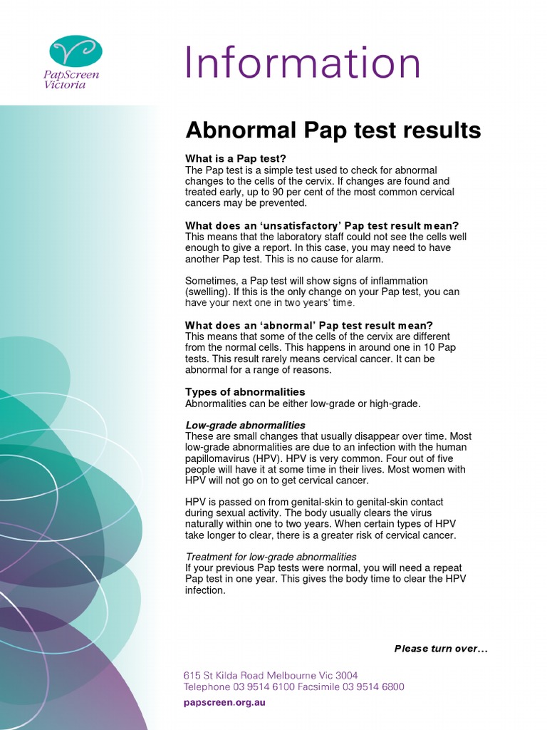 Abnormal Pap Test Results PDF Cervical Cancer Neoplasms - “sometimes we need to understand what type of hpv is present to understand the next steps,” explains aparna sridhar, md, associate clinical professor of obstetrics and gynecology at the david geffen school of medicine in los angeles. Here’s what different types of abnormal results might mean: During the procedure, the doctor may use a slightly acidic vinegar. It means that. You should also read this: Can A Uti Cause A False Positive Pregnancy Test