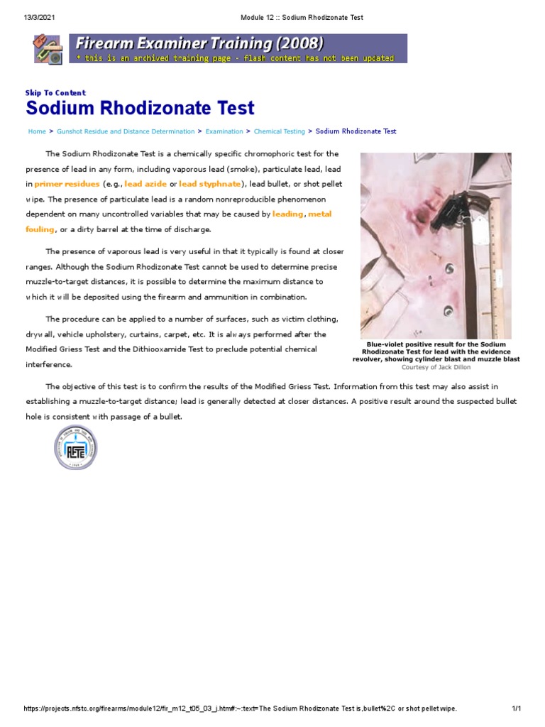 Module 12 Sodium Rhodizonate Test PDF - The following reagents and test media are required for the sodium rhodizonate test: We have made a comprehensive investigation of the chemistry associated with the sodium rhodizonate test for particulate lead deposited on surfaces as a consequence of a. This includes vaporous lead (smoke), particulate lead and “bullet wipe”. Harrison and gilroy’s test detects pb, ba, and sb, while the. You should also read this: At Home Dna Test Cvs