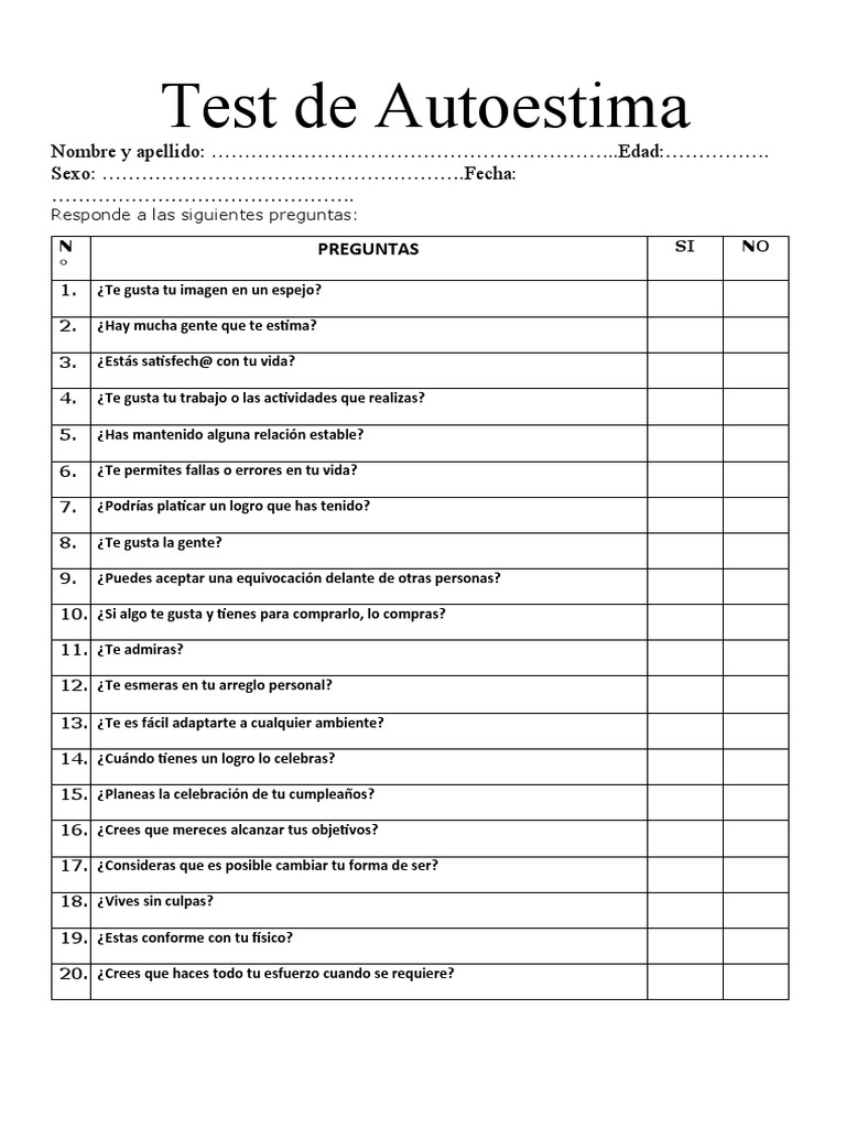 Test de Autoestima PDF - Uno de esos métodos es realizar un test de emociones, que puede brindarnos una visión más clara de nuestro estado emocional actual. Para medir tu nivel de sentimientos, existen varios test que pueden ayudarte a evaluar tu estado emocional y tus reacciones ante diferentes situaciones. Aprenderás a identificar las señales que tu cuerpo te envía y a interpretar. Este artículo. You should also read this: Can You Buy A Uti Test Over The Counter