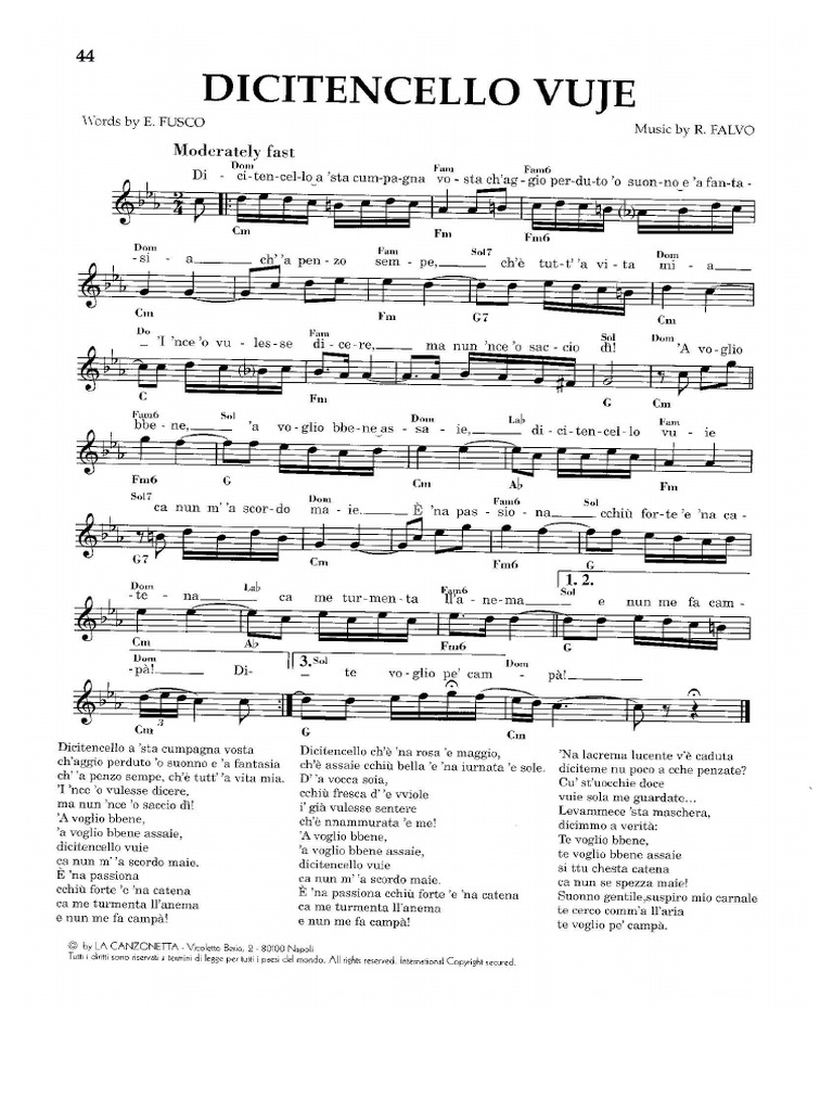 FilePMLP664533Dicitencellovuie.pdf IMSLP - Dicitencello a ′sta cumpagna vosta ch'aggio perduto ′o suonno e 'a fantasia ch'a penzo sem. Dicitencello a 'sta cumpagna vosta / ch'aggio perduto 'o suonno e 'a fantasia. / ch''a penzo sempe / ch'? / i' nce 'o vvulesse dicere / ma nun. Dicitencello a 'sta cumpagna vosta / c'aggio perduto 'o suonno e 'a fantasia / c' 'a penzo. You should also read this: Mississippi Permit Test Book
