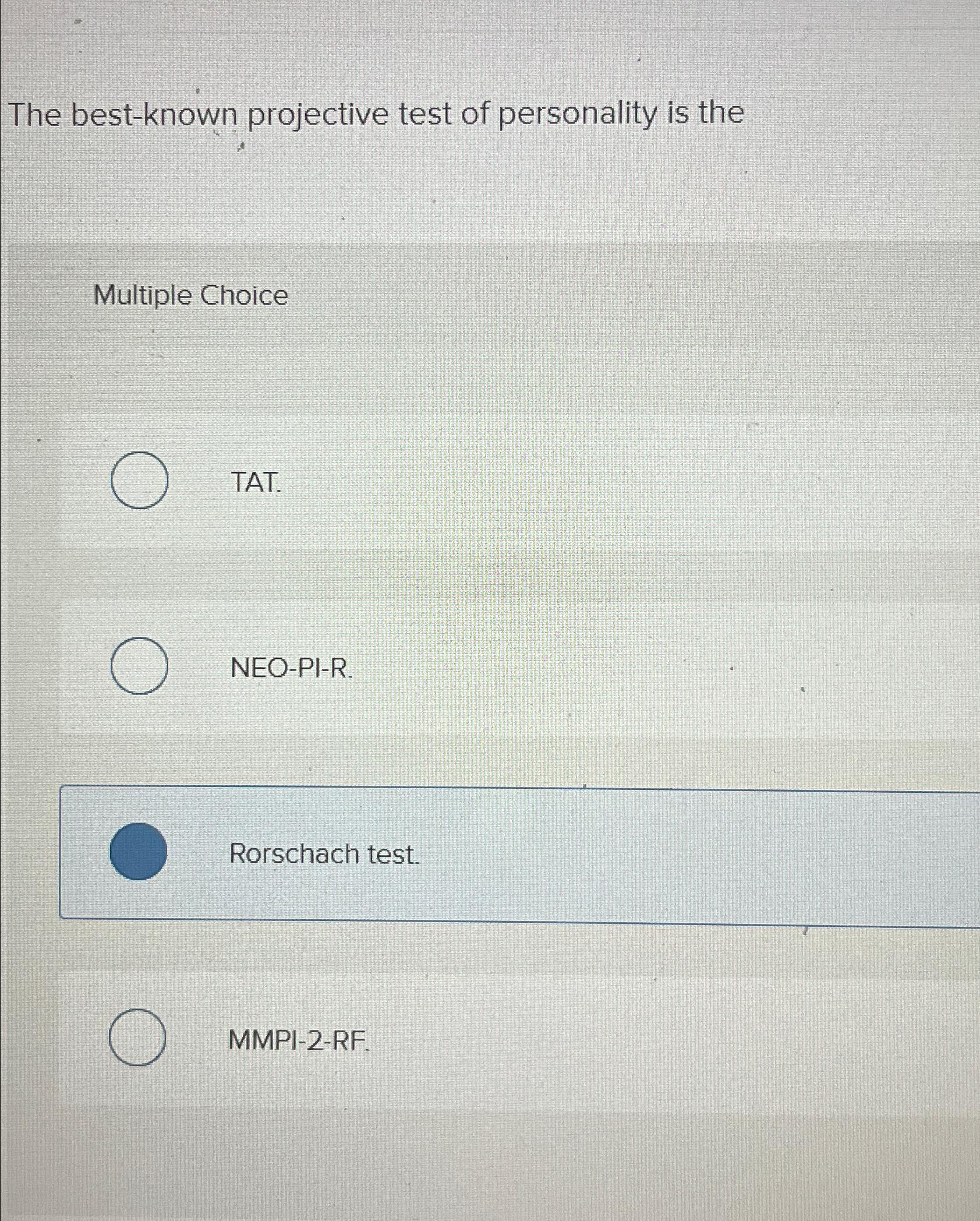 Solved The bestknown projective test of personality is - Uses an unchanged collection of inkblots to measure personality. Clients view each inkblot and tell the clinician what they see in it. Developed by swiss psychiatrist hermann rorschach, this test involves showing respondents. The _____ is the best known and most frequently used projective personality test Your solution’s ready to go! You should also read this: Dontredriving.com Practice Test