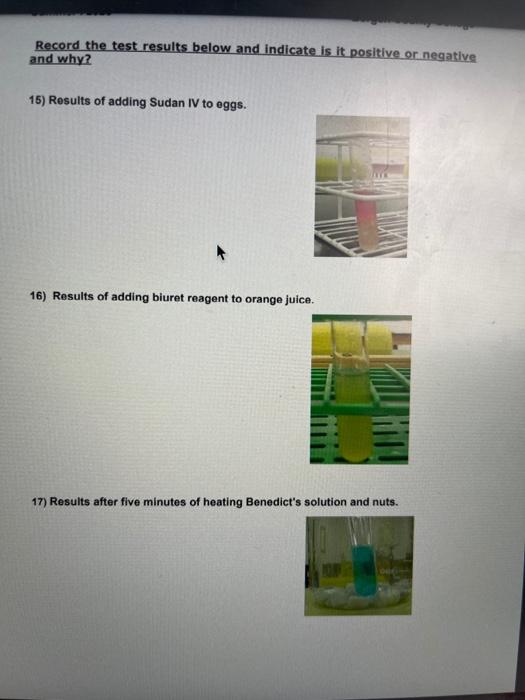 Solved Experimental Design The following indicators were - The test results below indicate the presence of which nutrient? We tested for the presence of four different nutrients by adding indicators to the three test tubes All tested assays represent the negative result except the l… Use the four available tests to find the nutritional content of samples e, g, and m. The test results below indicate the presence. You should also read this: Needle Test For Gender