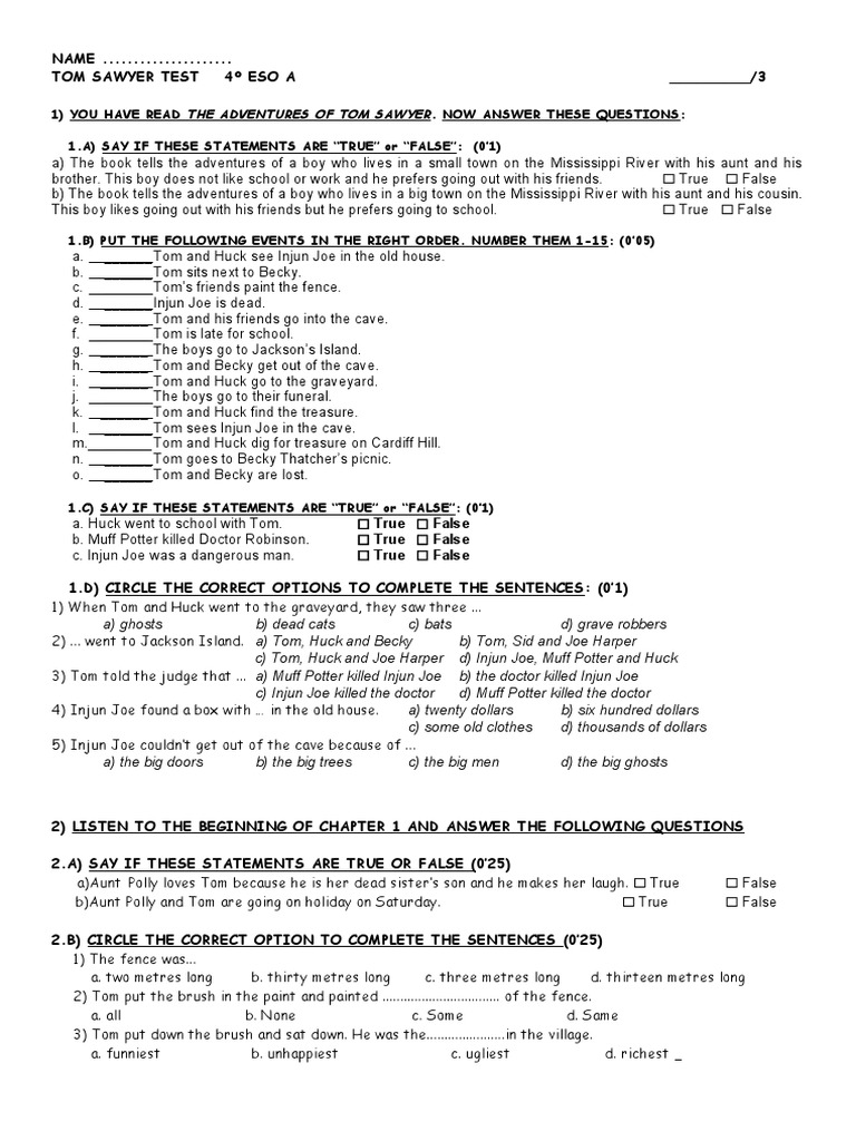 "The Adventures of Tom Sawyer" worksheets Made By Teachers - Learn english 7th grade tom sawyer with free interactive flashcards. Study with quizlet and memorize flashcards containing terms like alacrity, guile, intrepid and more. Tom sawyer test quiz for 7th grade students. Study with quizlet and memorize flashcards containing terms like what is is mark twain's reals name?, what state and town was mark. Perfect prep for the adventures of. You should also read this: Sti Testing Eugene