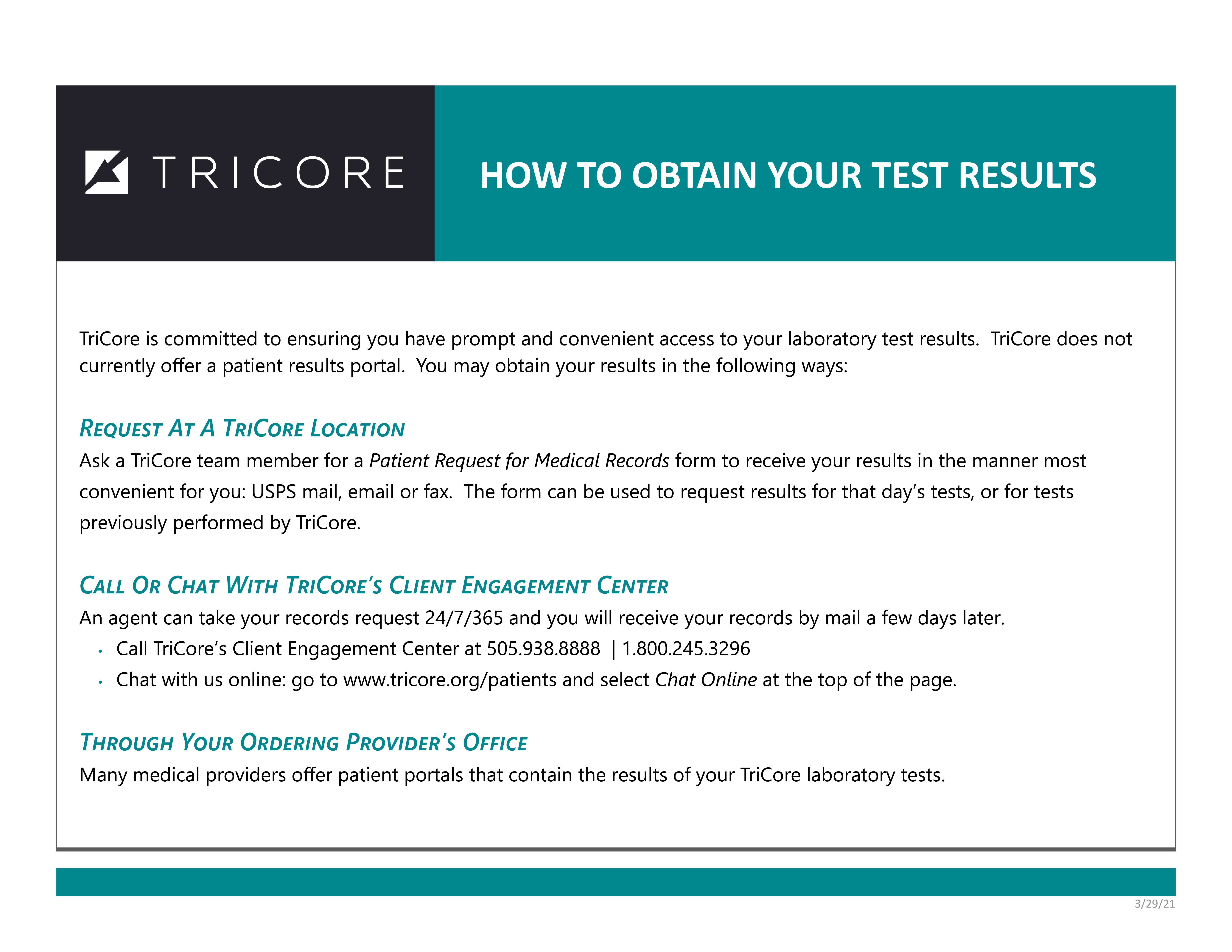 C.Difficile an epidemic that is waiting for answers ppt download - Tricore makes it easy to order your own lab tests without a doctor visit. Can i get my lab results from tricore? Your lab results will be sent to you as quickly as possible, and within no more than 30 days. You can now receive your lab results directly through our mytricore patient results portal. You may also search alphabetically. You should also read this: Do They Drug Test For Jury Duty