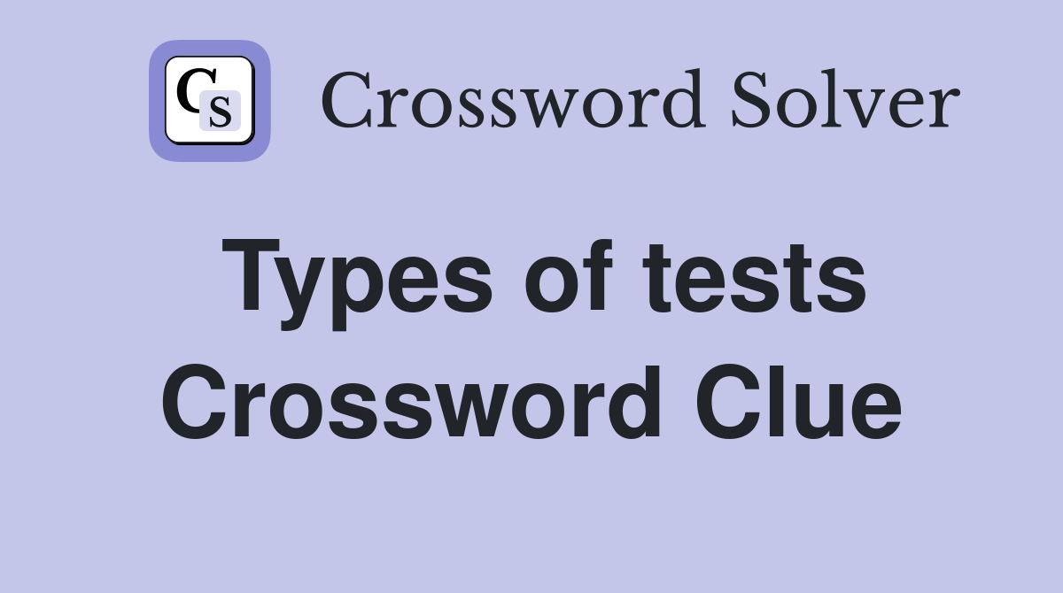 Types Of Tests Crossword - There are related clues (shown below). Search for crossword clues found in the daily celebrity, ny times, daily mirror, telegraph and major publications. Test type is a crossword puzzle clue that we have spotted over 20 times. A further 6 clues may be related. We have 1 possible answer in our database. You should also read this: Isc2 Testing Centers Near Me