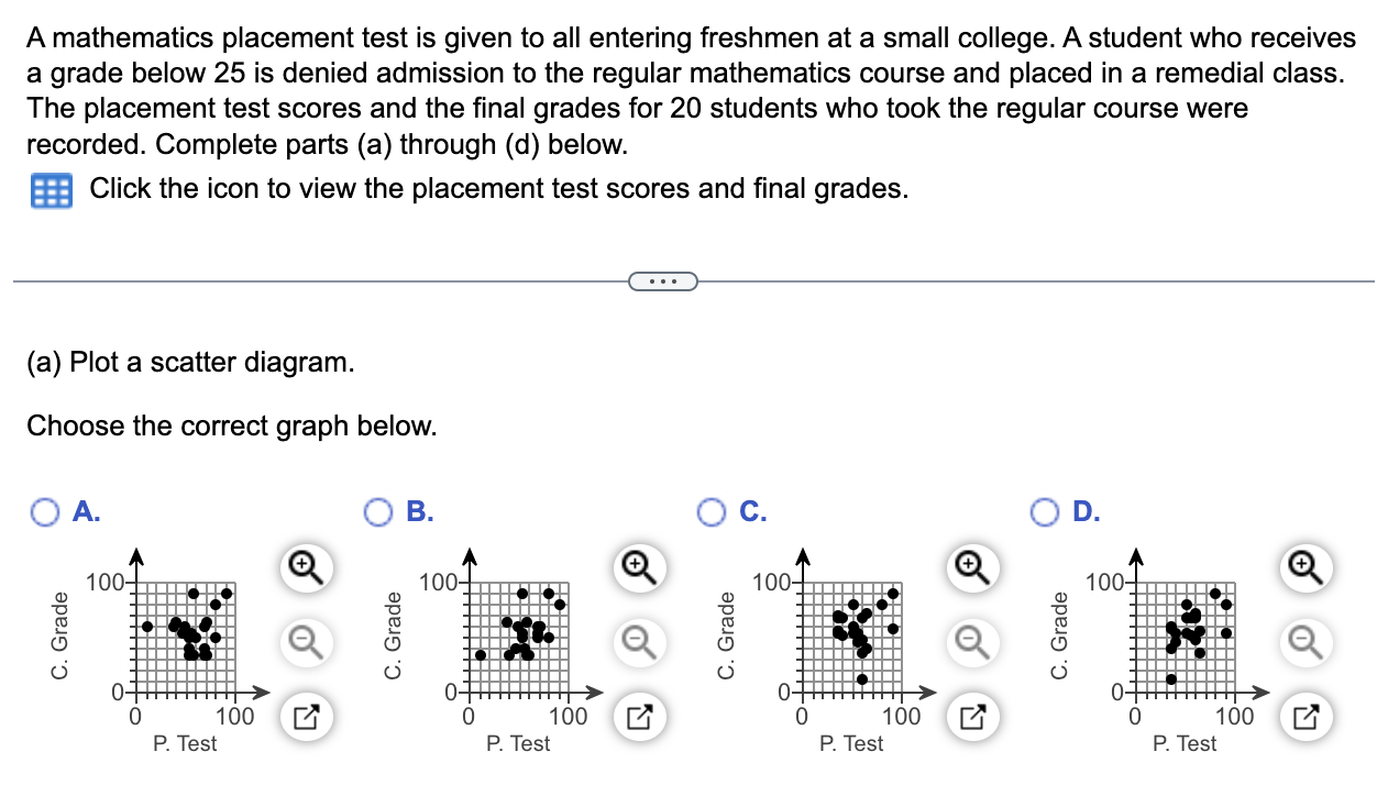 Solved A mathematics placement test is given to all entering - All students must satisfy one of the following options before entrance into a math course at ucr. The mae is an online placement test to. My friends haven't placed well and said they had terrible experiences with proctor u and scored relatively high on the placement test. So it is not necessary to. If you place into arc 35 (which. You should also read this: Zoloft Drug Test