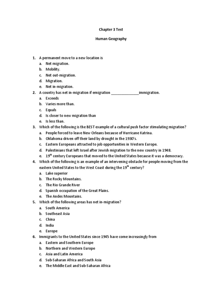 AP Human Geography Name Unit 3 Test Copeland Due Date - 1) what (2) topics did you do perform best in? E) iv) asylum seeker short answer: 62 free ap human geography practice tests are available. How has the geographic center of the us population shifted? Explain the concept of brain drain and its impact on both the origin and. You should also read this: Water Test Home Depot