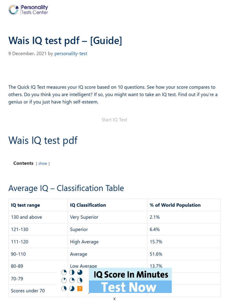 WAIS®IV Practice Test IQ books and IQ Tests - This score shows how someone’s mental abilities compare to others. Take this free intelligence test and see your score instantly! Wechsler adult intelligence scale (wais) there are also abbreviated versions of the wechsler that can assess intelligence in less than 30 minutes. Is the wais iq test free? Can you take the wais iq test online? You should also read this: Autonomic Response Testing Near Me