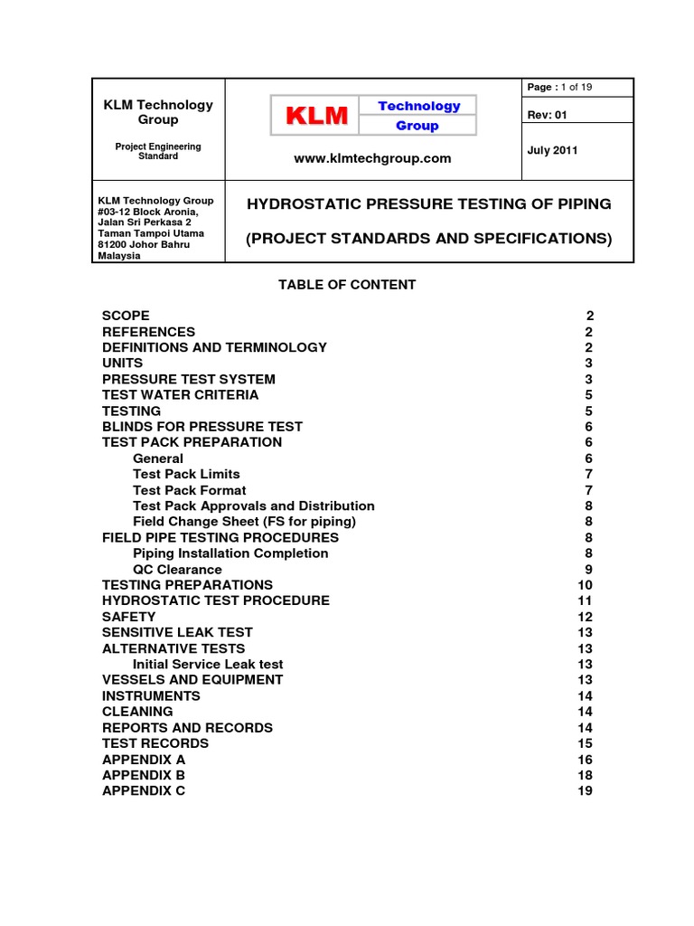 Hydrostatic Pressure Testing Of Piping (Project Standards And - Energy conservation program for consumer products and certain. 01 july 2011 scope this project. Contractors are required to either test or hire certified testing companies to. There are several excellent piping standards that address pressure testing with a liquid under pressure (hydrostatic testing), and air or an inert gas under pressure (pneumatic testing). The pressure gauge must be liquid filled. You should also read this: Does Kaiser Provide Free Covid Test Kits