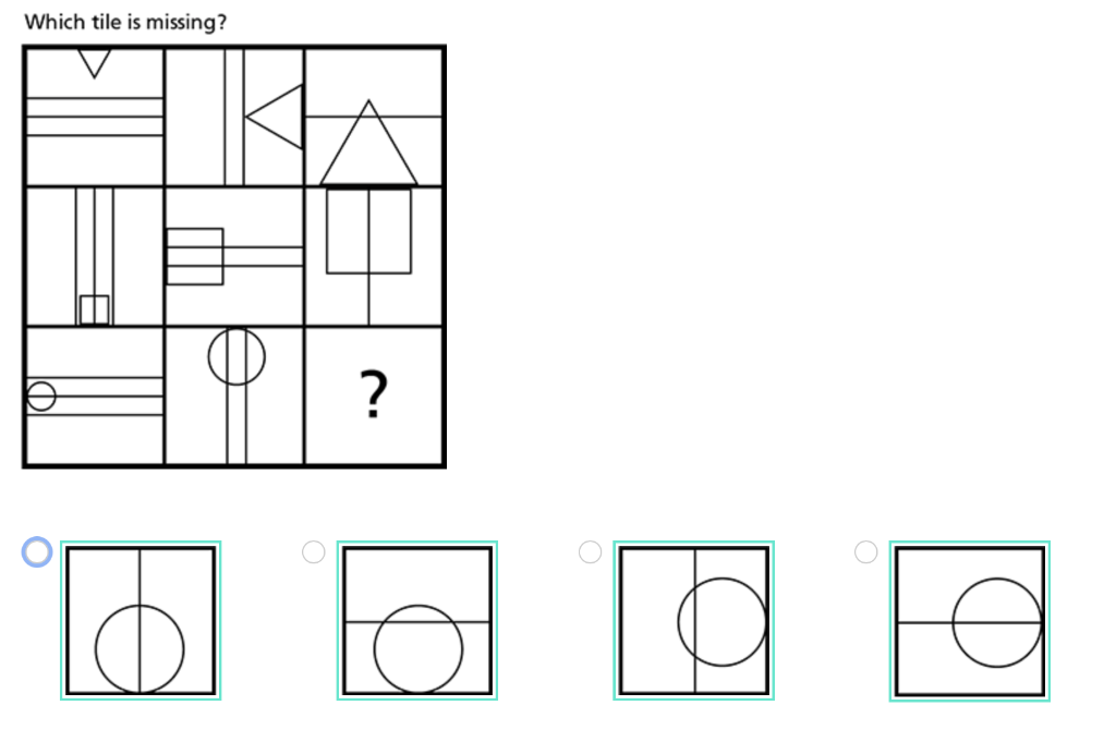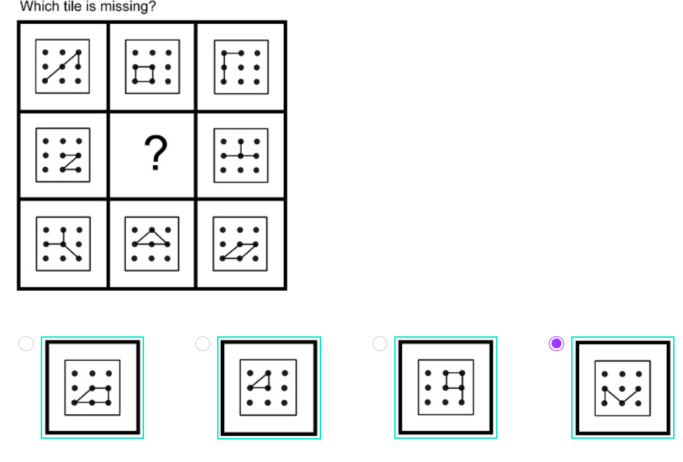 Solved Which tile is missing? - The third tile features both the circle and the 'x' inside. Look for similarities in shape, size, color, or. /r/jobs is the number one community for advice relating to your career. In each question, you’ll see an incomplete 3×3 matrix of symbols. The cognitive questions are divided into four types: You should also read this: Test-netconnection Udp